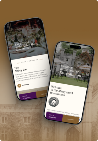 A fully functional Our team was tasked with designing and developing a website that would reflect the unique spirit of the Abbey Hotel while enhancing user experience across all devices. We crafted a warm, inviting UI that honours the hotel’s heritage and refined atmosphere. The website was built on WordPress, ensuring ease of content management for the hotel staff, while delivering a seamless and responsive browsing experience for visitors. From showcasing their beautiful venue to simplifying bookings and inquiries, the new digital presence supports the hotel’s continued growth and guest engagement.
